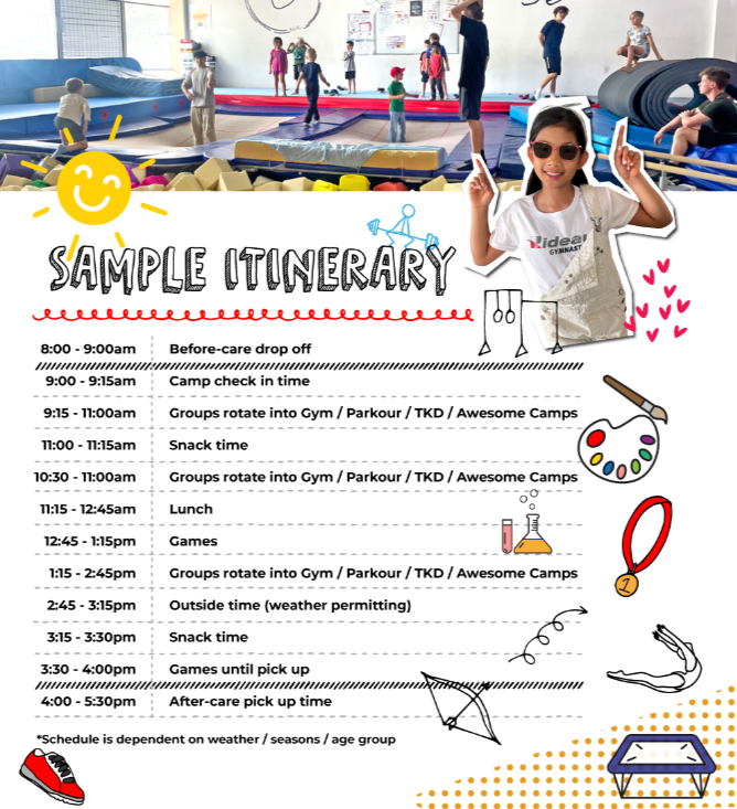 Rideau Gymnastics offers exciting themed camps where kids can register for a single day or the full week. Groups are created based on age whenever possible.